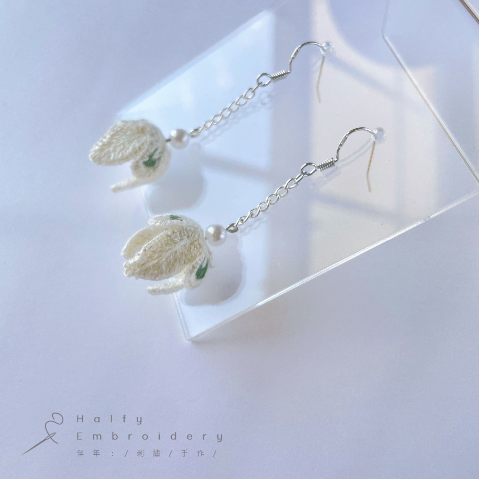 《雪花蓮》垂墜花朵耳環
